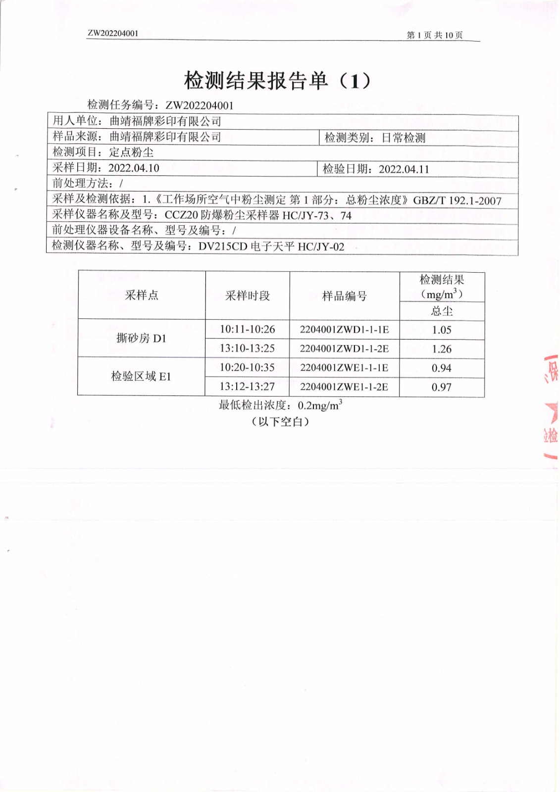危害因素檢測(cè)報(bào)告
